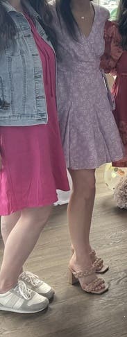 As is typical for me, as a larger chested woman, I should have sized up in this wrap dress. I had to wear a bandeau underneath otherwise it would have been extremely inappropriate looking. It’s a super sweet silhouette.