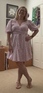 I wore this dress to afternoon tea on our trip to London and it was perfect for that setting! The fit was great - I used fashion tape to secure the neckline, which I usually do with wrap dresses, and it worked well. It’s such a lovely lilac dress!