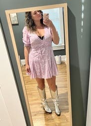 A little tummy-forward for my apple shape but was a fun cute Easter dress. I did have to wear a little cropped tank under it so I wasn’t serving a side of tits with my deviled eggs 😜