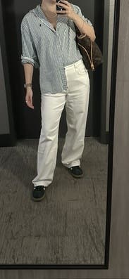 Classic button down and the perfect fit! Great rental piece for work, I paired it with denim.