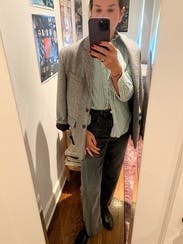 I am sure I will be renting this again! Still losing weight which is why I won't buy it. It's the perfect shirt to wear when you want to look casual yet sophisticated. Wore it open over a nice white fitted t shirt, cuffed jeans and navy loafers. When traveling, I wore a beige crew neck sweater over my shoulders. So many compliments!
