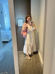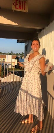 I loved this so much I rented it two separate summers and then finally bought it. It’s a perfect dress and is so classic. Feels special and straight out of a Nancy Meyers movie in the best of ways. Many say it runs big but I found it to be tts and I genuinely love everything about the fit. The tie at the waist makes it. And I adore the fabric covered buttons.
