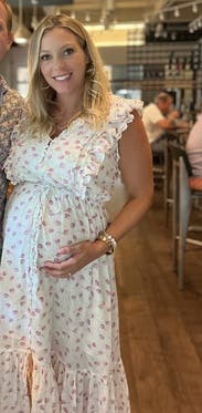 The softest dress!! I loved wearing this to my cousin’s baby shower and received many compliments. It fits a bit generous but the tie helps to bring it in for a better fit.