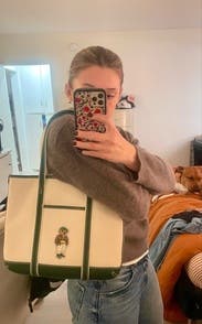 Love the polo bear! It’s smaller than a normal tote bag but good for casual day to day wear. Outside can get scuffed easily tho. Love the outside pocket for my phone!