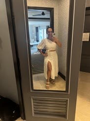 Occasion: Cruise White Night Size Worn: True to size Height: Approx. 5’4” – 5’7” Fit: Flattering and breezy Style Notes: Absolutely loved this dress for white night on our cruise! The eyelet fabric felt elegant but still breathable, perfect for warm ocean air. The wrap waist was adjustable and really flattering around the midsection, while the slit added a fun, flirty vibe without being too revealing. The puff sleeves gave it a little extra drama and photographed beautifully during sunset. Paired it with wedge sandals and statement earrings for a polished look.Would Definitely Rent Again! Perfect for tropical vacations, bridal events, or summer parties.