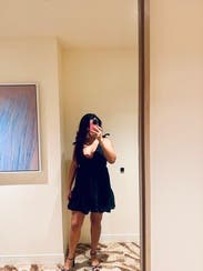 Wore for a friend's birthday dinner. Got tons of compliments. The straps tie/are adjustable but can still be a little long. Used Boombas to keep the girls in place. The length is a little short but was perfect length for me!