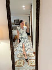 Great shirt to wear on a winery tour in MX. Waist cinches just under the bust, which isn't always super flattering but all the ruffles on this one and the tie made it work.
