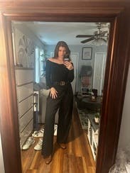 I would have bought this, if I could afford! Made me feel sexy and fit great. Shoulders stayed down and length was great to tuck in to high waisted pant! Def try!!