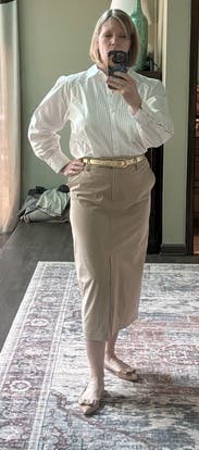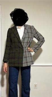 Such a unique white shirt! I loved the pintucking tuxedo look. The shoulders and yoke had such pretty details. The sleeves exhibited fabric-covered buttons all the way from the cuff to the shoulder adding to the interest. It was long enough for me to tuck in and keep it tucked in without popping out. It didn't photograph well or show up on virtual calls very well - just looked like a white shirt. Much better in person. I'd rent it again if I needed a more-than-basic white top!