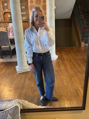 Loved that it was a little loose and breezy. Wore with bottom button open over barrel jeans.