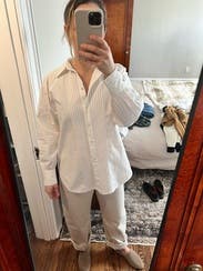 super cute elevated simple white button down. definitely more oversized but i prefer that type of fit!