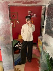 I really enjoyed this tuxedo shirt. It was easy to wear but had amazing details that made it unique. The fit was TTS though the cuffs were a bit tight. The material overall was a little stiff, but probably just fro being recently dry cleaned.