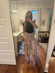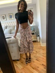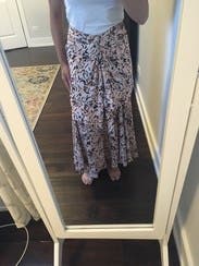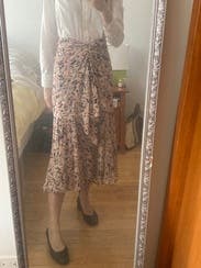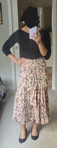 Perhaps the most flattering midi skirt I've ever worn. Ruching in the front hits just the right spot and everything hugged so well. I loved every minute of wearing this and cannot wait to rent again.