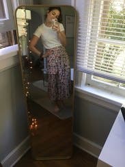 I really loved this skirt. Even with it being a hot summer in Chicago, this skirt still felt lightweight enough and was perfect for the evening. The fabric did loosen a little on the waist from wear, but I’d still consider this TTS.