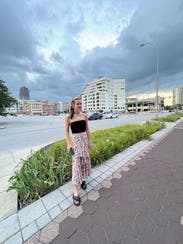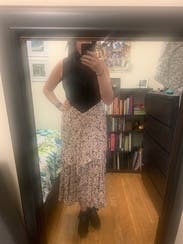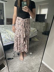 Wore this skirt for a bridal shower and it was perfect! It was slightly big on my waist and kept falling down but I think that was also happening cause the fabric is on the heavier side cause of all the layers.