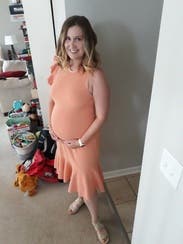 I rented this for my baby shower and absolutely loved it - I got tons of compliments on the dress and it was super comfy to wear all day- very stretchy material. I rented both M and L and ended up wearing the medium. At the time of this picture I was 24.5 weeks pregnant, 5'7" ~175 lbs and 36F bra size. (Normally size 8 and 34D). I definitely recommend!!