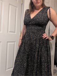 NWT! This dress made me feel very feminine and the black color was sophisticated. Wore it to a nice dinner with a pinched black blazer and for walking around in a sunny day with sneakers and a coat.
