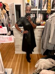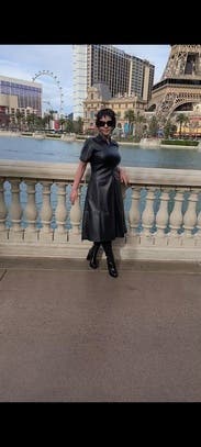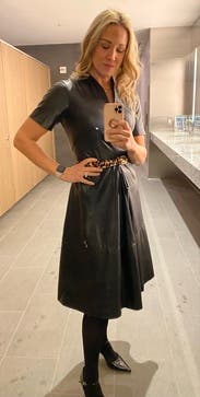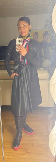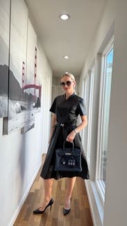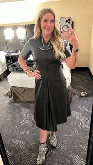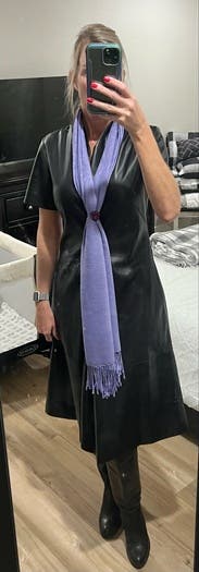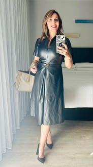 Unique spin on a leather dress, loved this one for events and work