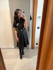 I'm always worried about leather dresses looking like a garbage bag on me. The fit was great and it cinched my waist perfectly. I would rent again!