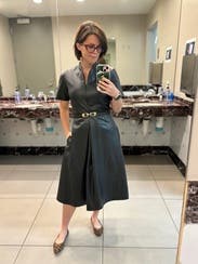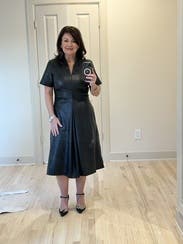 This dress is absolutely gorgeous. The faux leather is so soft. It's perfect both for the office and night out.