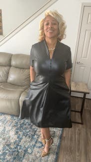 Great fit and edgy leather work dress. Wore to conference and received lots of compliments. Love the zipper front for sexier option.