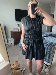 I loved this vegan leather dress! It fit nicely and I loved how the back was open. I got a lot of compliments and would definitely wear it again!