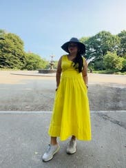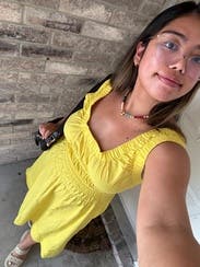 Love the yellow! Right length. Very casual. Paired with colorful necklace