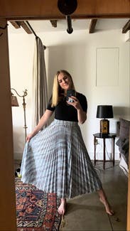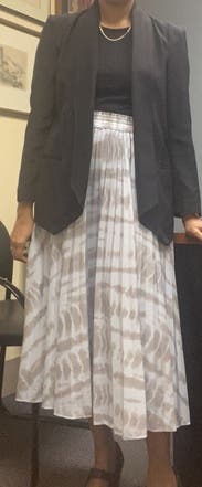 I got this skirt on a whim to rotate in for office wear, but ended up loving it so much I chose it to wear to speak in a conference. Cute design, flattering (hard for pleats to do), and easy to wear.