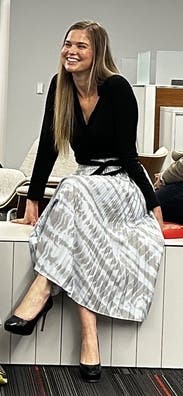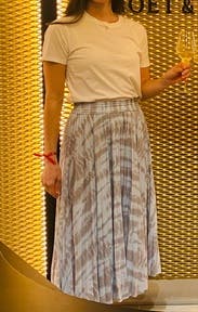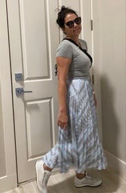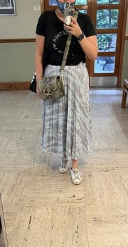 Beautiful very good quality skirt. Loved the feel and way it moves. Can dress up or down. Perfect for our anniversary date !