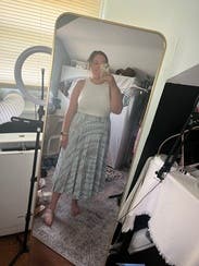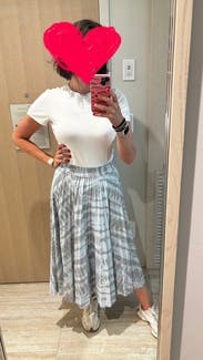 I don’t normally pick skirts, but felt like trying something outside my wheelhouse. It was comfy and cute. I do like it styled with a belt vs the exposed smocked waistband, so just felt like I was missing that accessory.