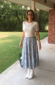 Great volume and moves so beautifully. Hurrying across the street and walking down the stairs just take on a movie star quality in this skirt. Love, love, loved!