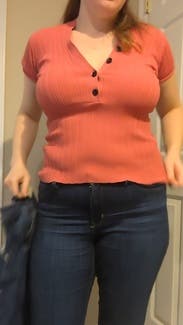 I love the style and the subtle button detail to add extra interest. The fit unfortunately is not good If you have a bigger chest, this might not be for you. The buttons will pull and could just pop open. The arms are also extremely tight which just isn’t flattering.