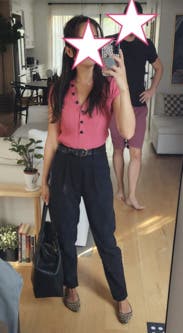 This was a fun one for when you want a sexier vibe. I wore with black High waisted jeans, would be cute with a skirt also. Stretchy so XS could work for a 2/4 also