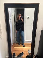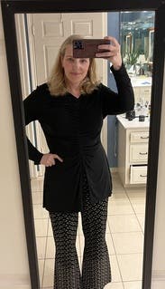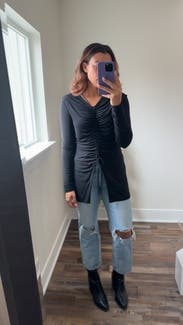 Such a unique top that adds shape and detail to a simple outfit. Wore it for a date night!