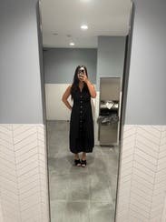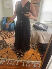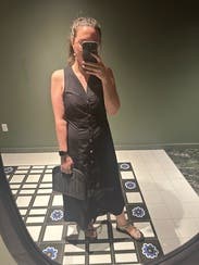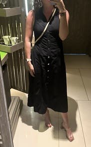 A simple yet sophisticated black dress. I loved wearing it. Very easy to style and fit TTS. The armholes are a bit large but I liked the look. A great rental.