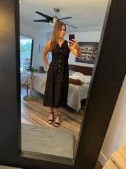 Loved this dress! Was a little big for me but I'm definitely an in between size person. Very versatile- wore it to work with a cardigan and also on a date night. Only reason I took a star off was one of the buttons fell right off even without it being loose and not snug.