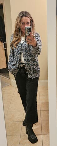 Pair this distressed leopard cardi by R13 with a neutral maxi and tall boots for an easy, stylish outfit.