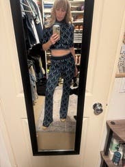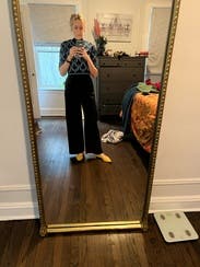 I wish I had a photo of this styled. Wore it with chunky boots a light coat. Got so many compliments! The 4 stars is due to how much the pants stretch out but you can feel it more than you can see it. I’ll definitely rent again.