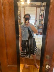 Wore this for the 4th of July in San Antonio Texas and it was perfect, it’s a feminine take on a denim vest, I took off a star because it was a little boxy