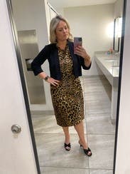 This leopard dress is so sassy and flattering. It does run a bit small, so size up. IG @bethielife