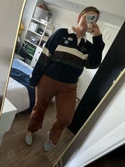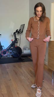 The pants aren’t the most flattering on their own, but paired with the matching sweater, the set is a total dream. Super comfy and cozy! Just be mindful of what you wear underneath. I went with Stringys underneath to avoid lines (google those they are lifesavers!), but make sure the pants are not too tight or you might get a bit of a “camel” situation. If the pants were a little more structured through the crotch, I’d buy the set in a heartbeat. It’s rare to find something that feels like pajamas but looks this polished and chic. Snapped this photo from my TikTok (wish I could upload the video because it shows the fit so much better). I post tons of RTR try-ons there if you want to check them out (@double_cheeseburger) and show me yours!