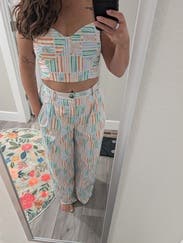Perfect summer set!! I loved wearing this it was lightweight and great for a party. The top could have been a little tighter but it worked!
