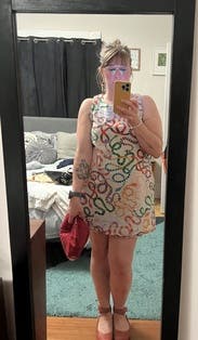 Perfect shift dress. Great vacation dress or to have around town. Would have bought if it was on sale a little more. The print is perfect. I can't wait to try the other styles in this dress.