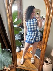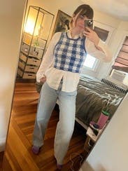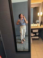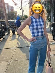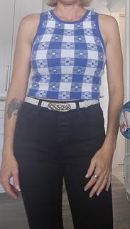 Perfect everyday tank for height of summer even though it’s a knit. Definitely thankful I got the Medium even though I’m generally a small. It was still fitted and cropped which I wore with high waisted jeans and shorts. My husband was surprisingly a fan of this and suggested to consider buying it. But the price was still too high. Alas, would rent again next summer!