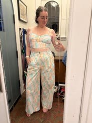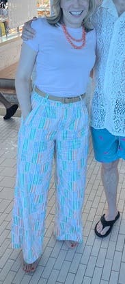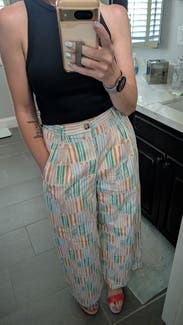 Well made pair of summery pants, which I 100% loved. I sized up to an 8 but probably didn't need to. These did need a bit of a heel and a belt. Also, a white cropped top works super well, as does a white button-down for more austere occasions. I tried the matching top with this and found it to fit really oddly (neither the small nor the medium worked).