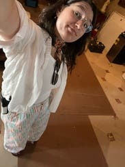 I didn’t end up wearing these because they just looked too bulky/baggy on me. I’m not sure who these would suit - I’m 5’3 and the hem was perfect, so not sure how it would be on taller women. The waist also fit great so I wouldn’t size down, but it just seemed like too much fabric around the legs. They have a little bit of a structured feel so I think they’d be better if they were more tapered. The pattern was so cute though!