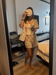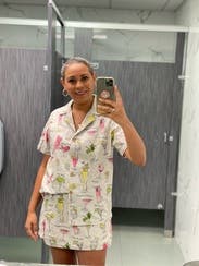 Rent the set!!! This was way too fun. I wore this running around one weekend and felt a little awkward when I dropped my daughter off at a birthday party wearing a short set covered in cocktails but whatever 🤣 Will rent again for vacation. The shorts fit very well and are super comfortable. Super high quality!