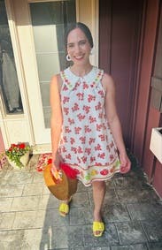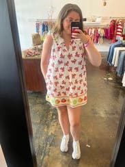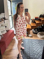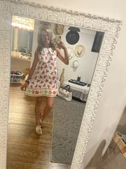 love the tomato design on this, the fit is flowy and I didn’t find it too short - especially because I always wear biker shorts under my dresses.