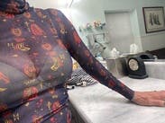 I enjoy the novelty of this top and was prepared to wear with a camisole. It's sexy with just a black bra underneath too. The material is thin, so the only thing I don't like is that the neck doesn't stay up, and the fabric therefore looks different at the neck than the rest of the shirt.