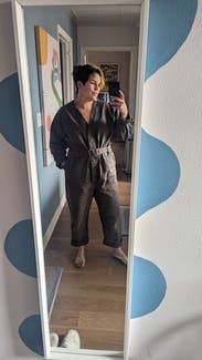 I love jumpsuits and an oversized fit and I really tried to make this work but it just wasn't happening. I don't think sizing down would've fixed much, the legs were still short and the v neck was just weird. No matter what I couldn't shake the jedi in training vibe.